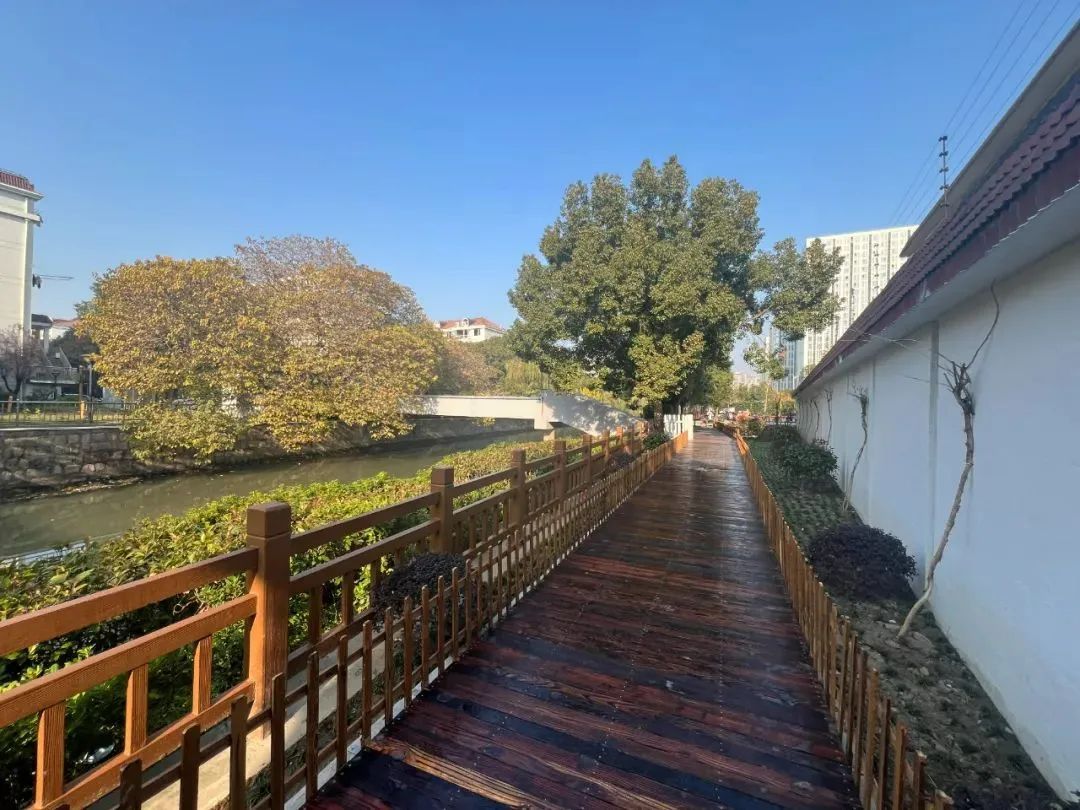 不只如此,相关部门还对4号口周边环境风貌进行了同步提升改造。东侧毗邻交通枢纽绿地公园的围墙改造成了可供休憩的矮椅;4号口西侧河边新建一条休闲步道,市民可通过步道直通北侧的非机动车停车场,享受更加便捷、安全、友好的高质量公共空间。