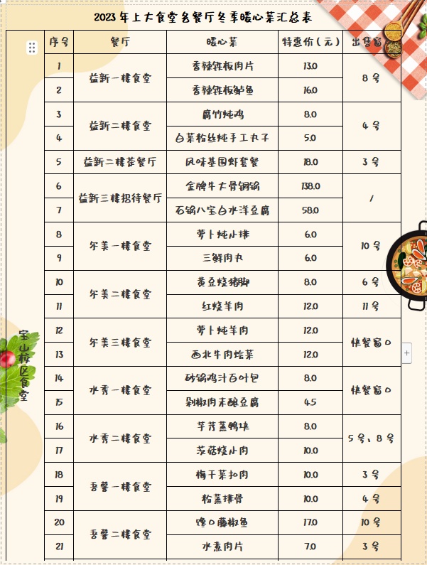2023上大食堂各餐厅暖心菜汇总