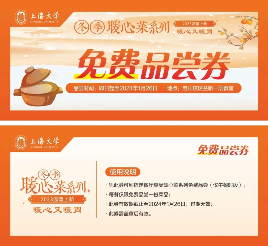 今日“大雪”,上海大学食堂又推出了2023冬季系列暖心菜,快来跟着小编打卡吧。
