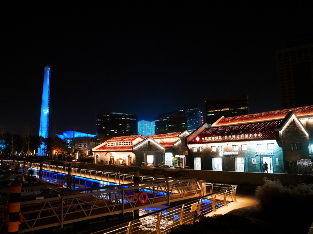 据介绍,水岸灯光秀以“闪亮·半马苏河”为主题,总时长为1分52秒,每天18点起,每20分钟点亮一次,循环播放至20点。通过“工业文明”“流光溢彩”和“繁华盛世”三个章节串联起半马苏河驿站·长风湾党群服务中心五栋楼宇建筑群和上海试剂总厂旧址的工业遗迹烟囱,将这两个原本独立的地点巧妙地融合在一起,每一个细节都经过细心打磨。