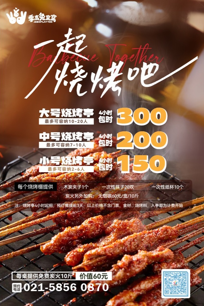 围坐凉亭篝火烧烤、在季高兔窝窝