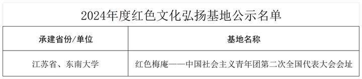 东南大学“红色梅庵——中国社会主义青年团第二次全国代表大会会址”入选2024年度红色文化弘扬基地公示名单。