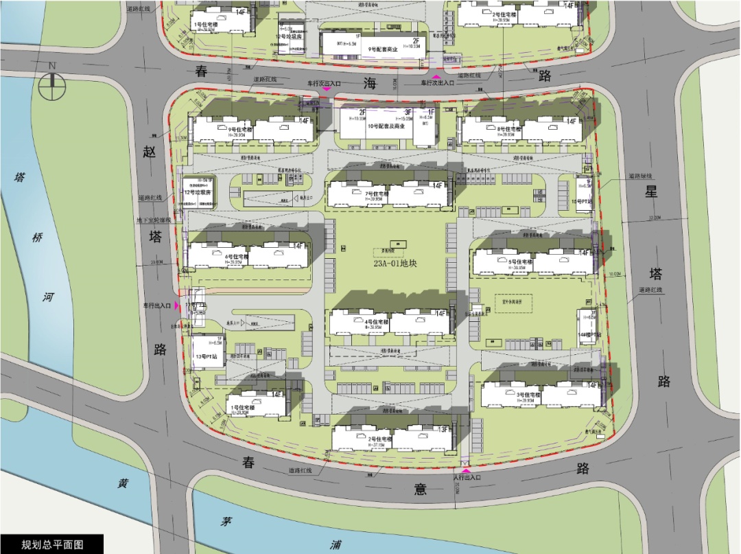 上海市嘉定区黄渡大居(一期)23A-01地块共有产权房保障住房项目东至星塔路、西至赵塔路、南至春意路、北至春海路,总用地面积约36350.5平方米。
