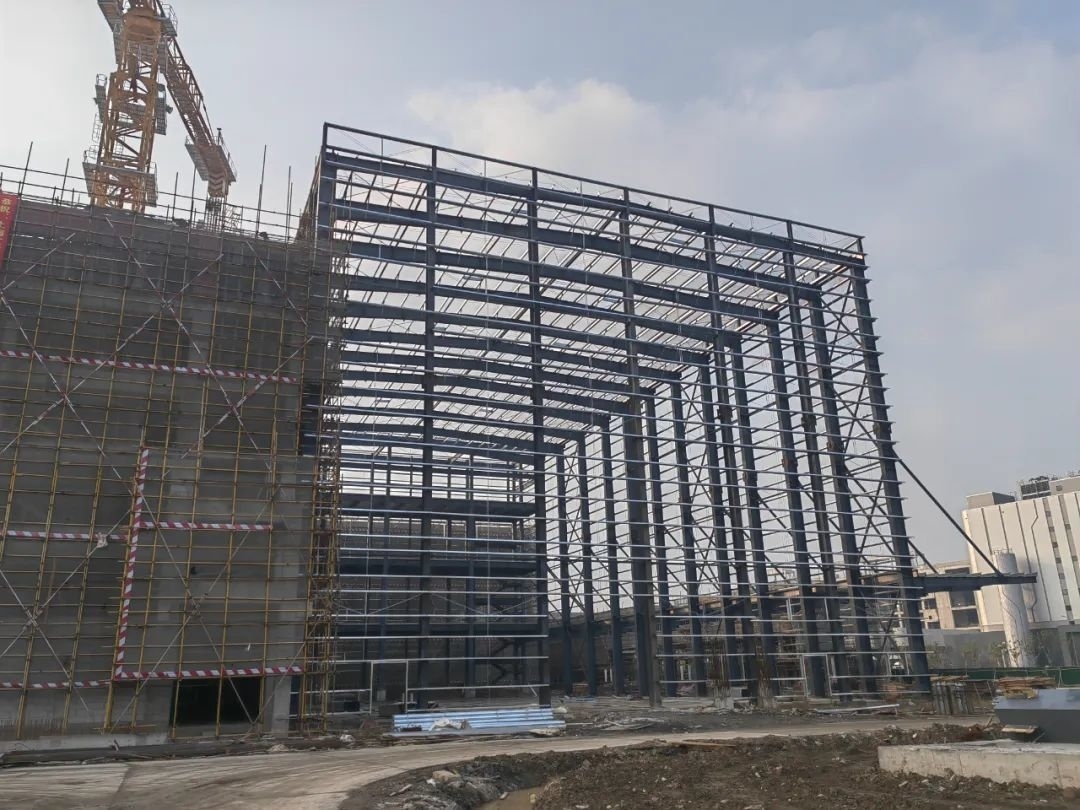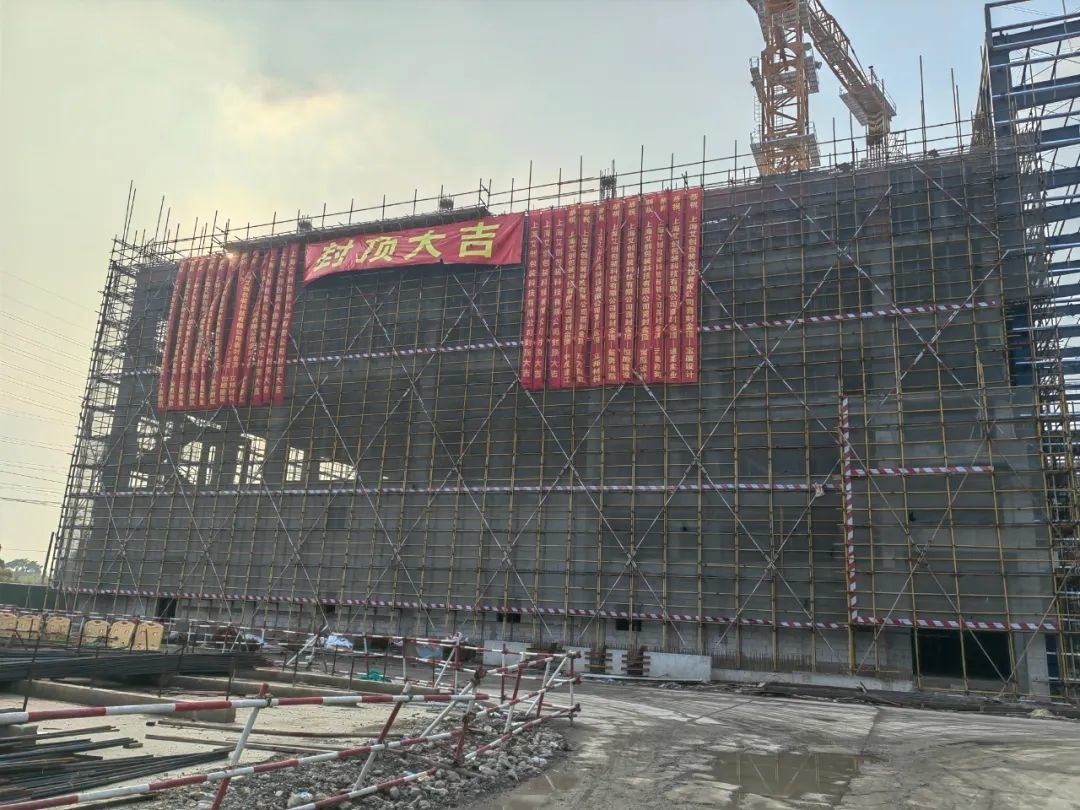 “生产车间一已完成主体封顶,正在内部装饰和机电安装;生产车间二预计12月中旬主体结构封顶,正在内部装饰和机电安装交叉作业;生产车间三已完成主体封顶,正在内部装饰和机电安装;综合办公楼正在一层钢结构吊装,预计1月底封顶;辅助用房主体结构已完成,正在配套施工。我们全员都值守一线,把控安全,保证质量,如期完成工期目标。”该项目工程部经理尚庆华表示。