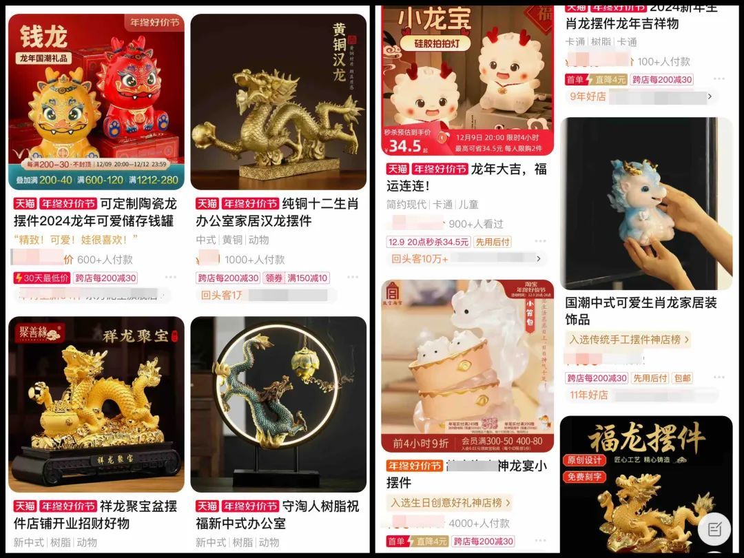 随着2024甲辰龙年的临近,除了火爆全网的“龙墩墩”,各大电商平台纷纷推出了种类繁多的龙元素产品,涵盖了玩具、春联、挂件、台历等多个领域,其独特的设计让人眼前一亮,为迎接新的一年增添了浓厚的节日氛围。今天,静宝就带领大家一起看看这些极具创意和吸引力的龙元素产品。
