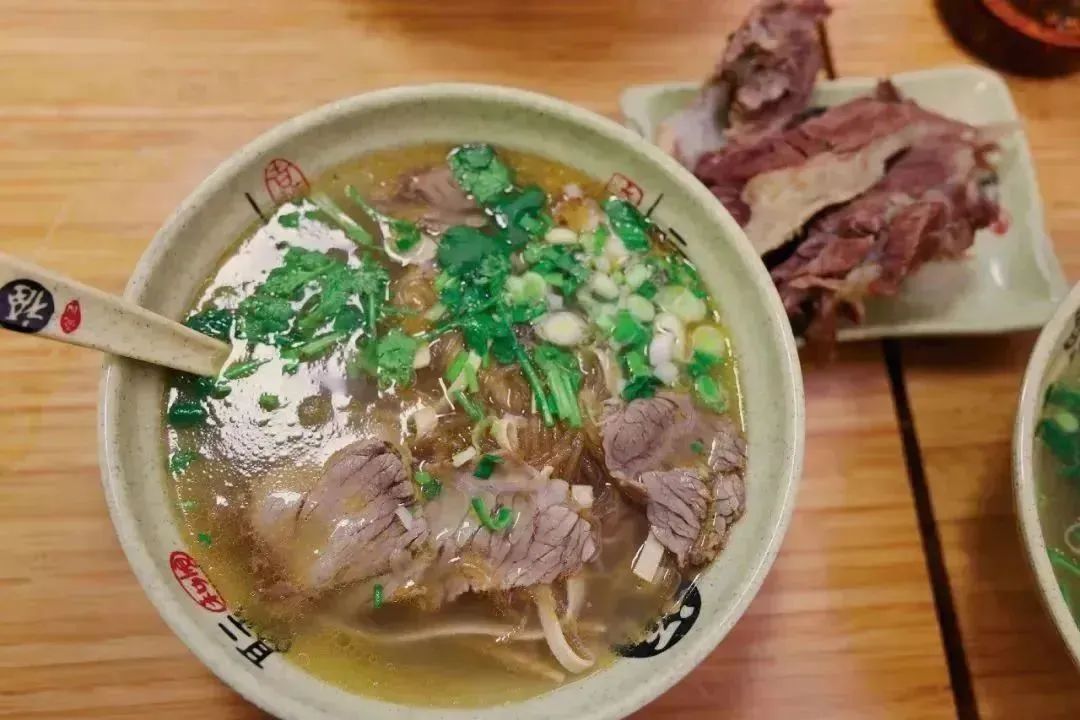 雾气缭绕间,老板利落地舀起一勺牛肉汤,在碗中一浇,醇厚的骨汤原味便同各种配料交织在一起,萦绕在鼻尖心头。