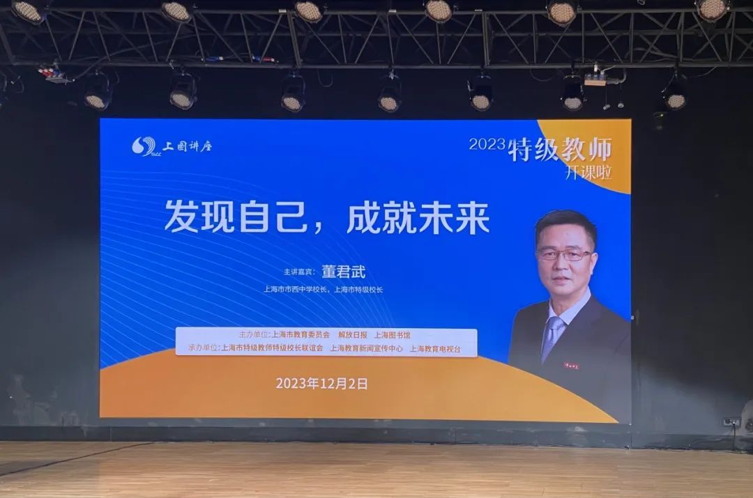 12月2日,“2023特级教师开课啦”第八讲在上海图书馆东馆开讲,上海市教育功臣、上海市市西中学校长董君武结合学校的实践案例,围绕“优势学习”理念,带来讲座“发现自己、成就未来”。