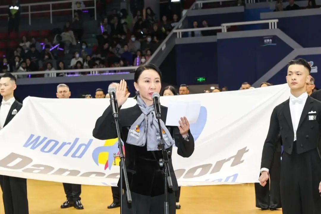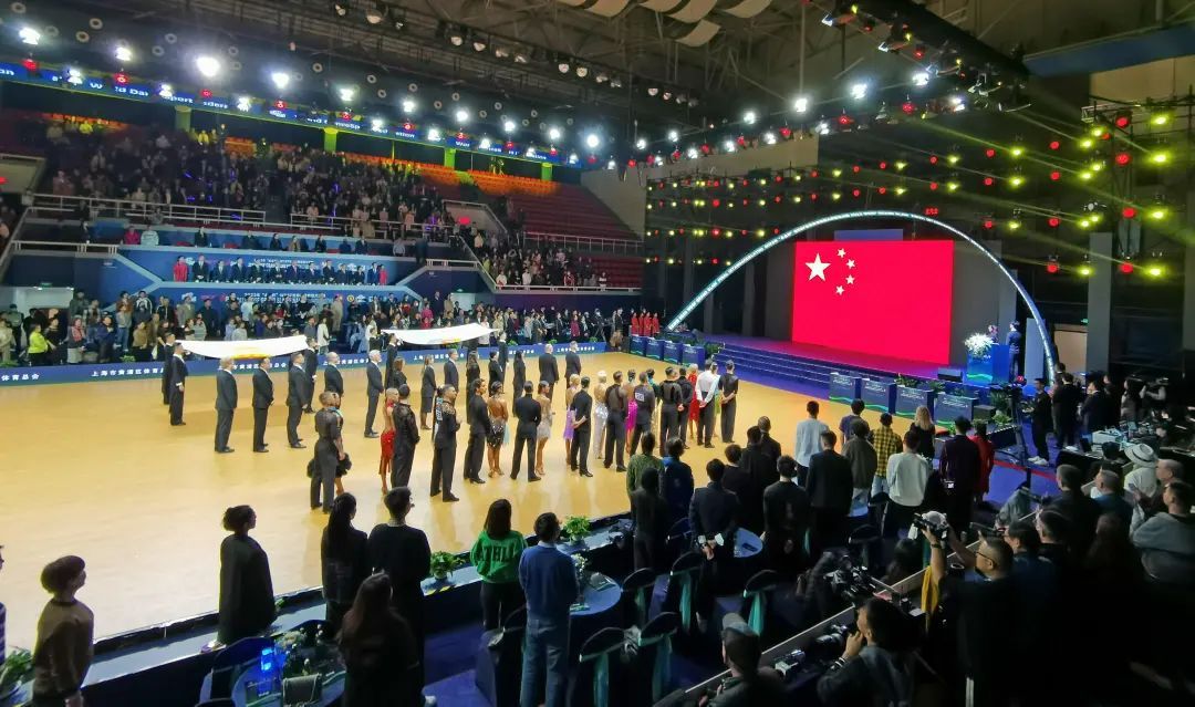 全体起立奏唱中华人民共和国国歌、奏世界体育舞蹈联合会会歌