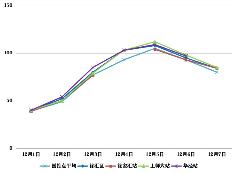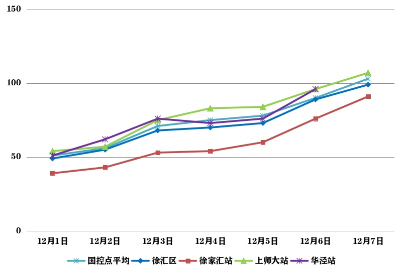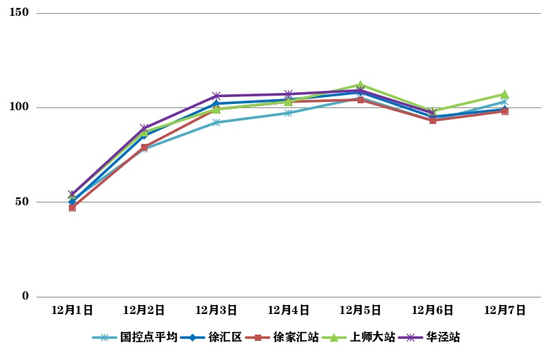12月1日至7日,徐汇区气温总体不断升高。在静稳天气条件的影响下,各类污染物容易出现累积情况,形成雾霾天气。上周空气环境质量4天优良。徐汇区生态环境局继续加强对各污染源的监管工作,坚持开展秋冬季空气质量攻坚行动。