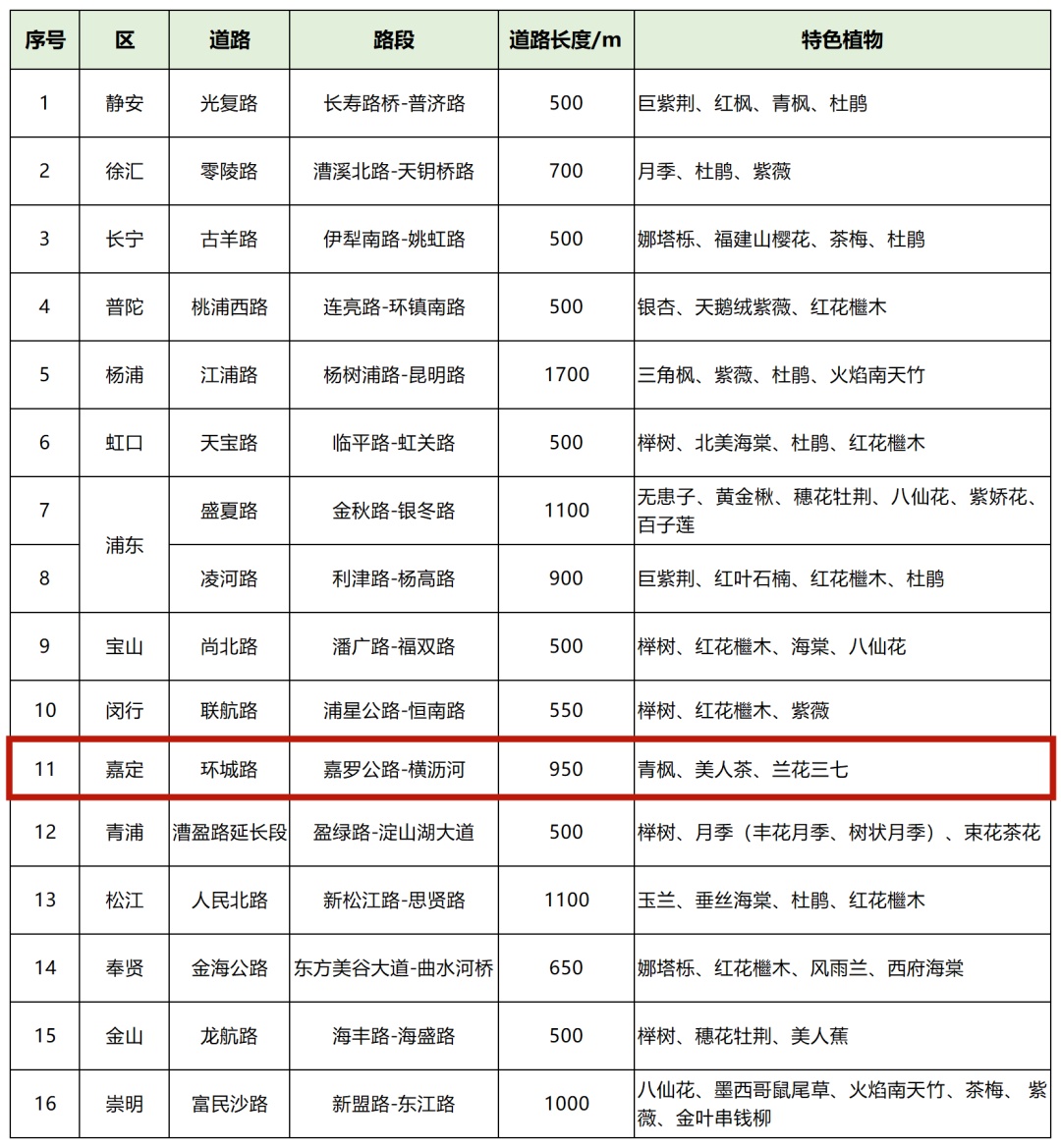 市绿化市容局介绍,对照《上海市绿化特色道路评定办法》,通过各区绿化主管部门进行自评和推荐,经行业专家现场两轮评定,拟命名16条道路为2023年度上海市绿化特色道路,现予以公示,其中嘉定区环城路(嘉罗公路-横沥河)上榜,详见↓