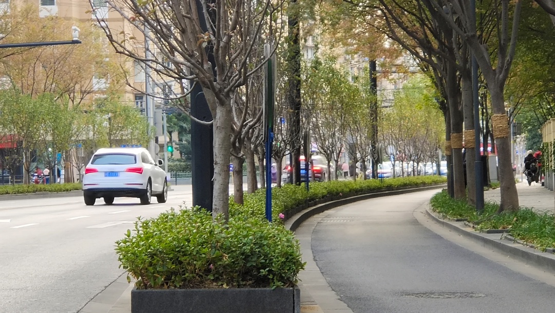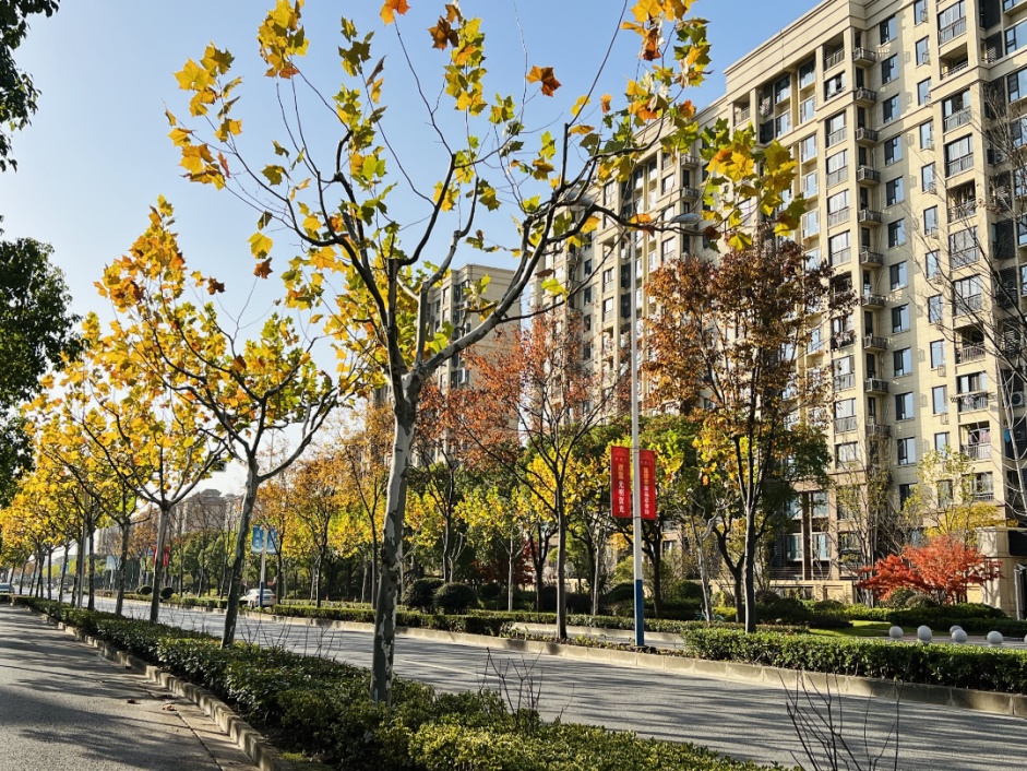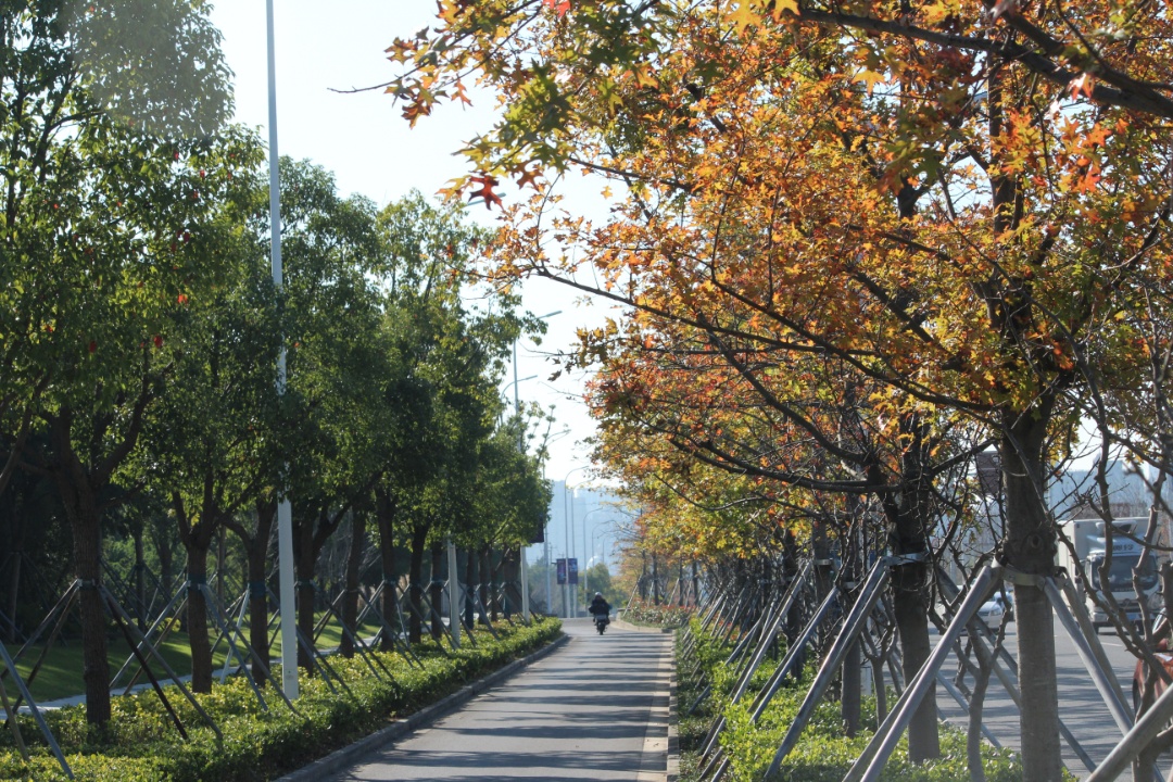 夏季在满目绿色中,八仙花花团锦簇,粉色与红色显得格外艳丽。秋季在和煦的阳光中,榉树变成褐红色,整条道路变得熠熠生辉。