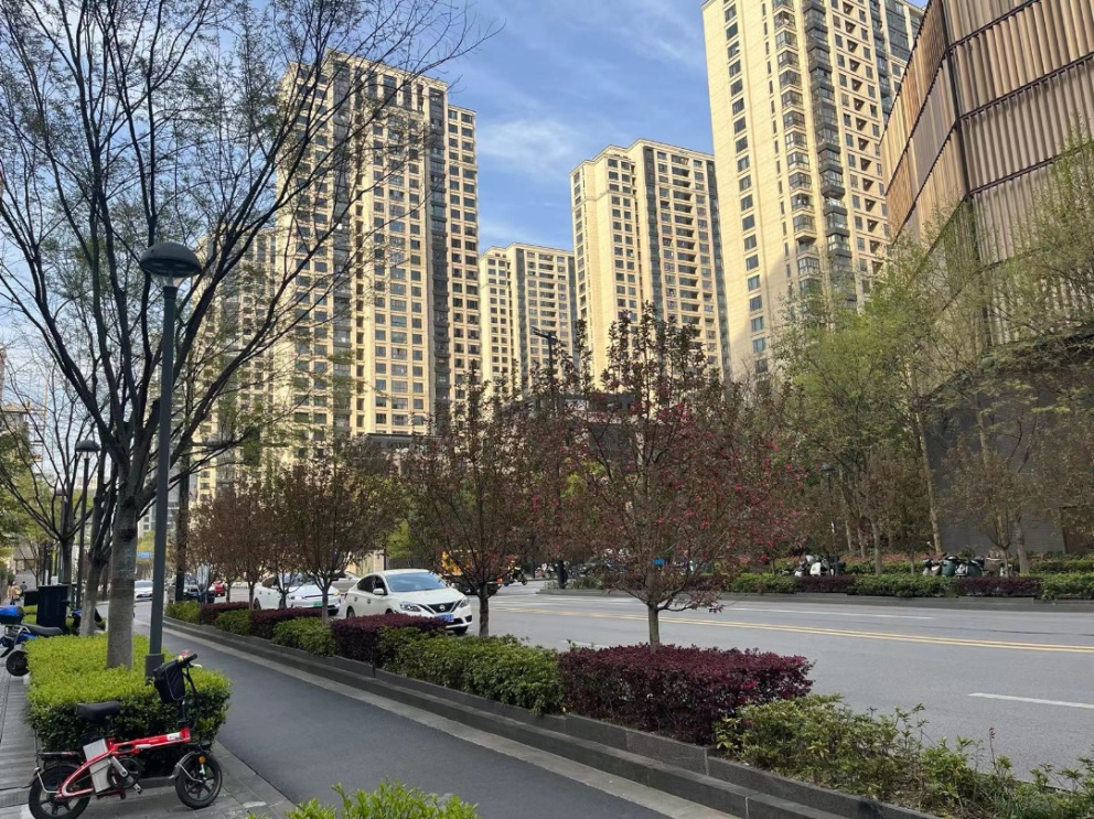沿线有星游城口袋公园、电影华苑绿地、飞洲国际绿地等,形成四季有花、色彩缤纷的街道景观。