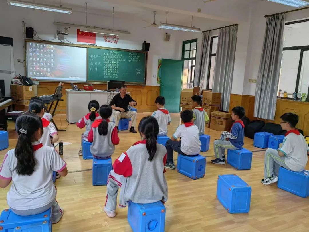 文化,需要由越来越多的年轻人来传承,通过年轻人的参与,才能激活出传统文化的新魅力。自2022年下半年起,薛国强开始到庄行学校进行公益讲课,每周用一节课的时间,来传授孩子们奉贤清音曲艺的唱法和技艺。如今,这一群来自天南海北的孩子,已经拥有了上台表演的自信和能力。孩子们喜欢这种艺术形式,在他们眼里这就是“用上海话唱歌”。看到薛老师,他们会开心地跑过去拥抱他。