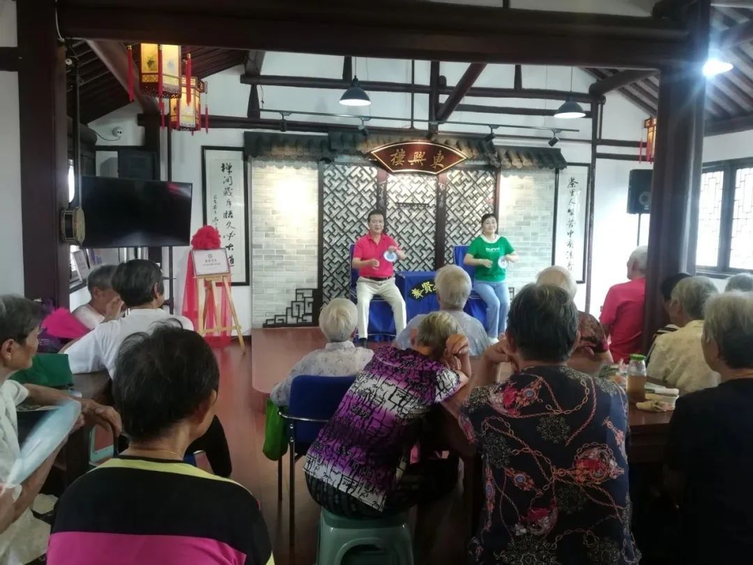2022年底,薛国强从庄行镇社区党群服务中心书记、主任的岗位上退休,开始了他的文化志愿者之路。他来到老街东兴楼——一座尘封许久的百年茶楼,每周六开展“相约星期六,快乐东兴楼”公益文艺演出,演出内容主要为奉贤清音、沪剧等曲艺类作品,不需要门票,还为观众提供免费茶水。观众从最开始的四五人,发展到现在每场稳定都有60人左右。