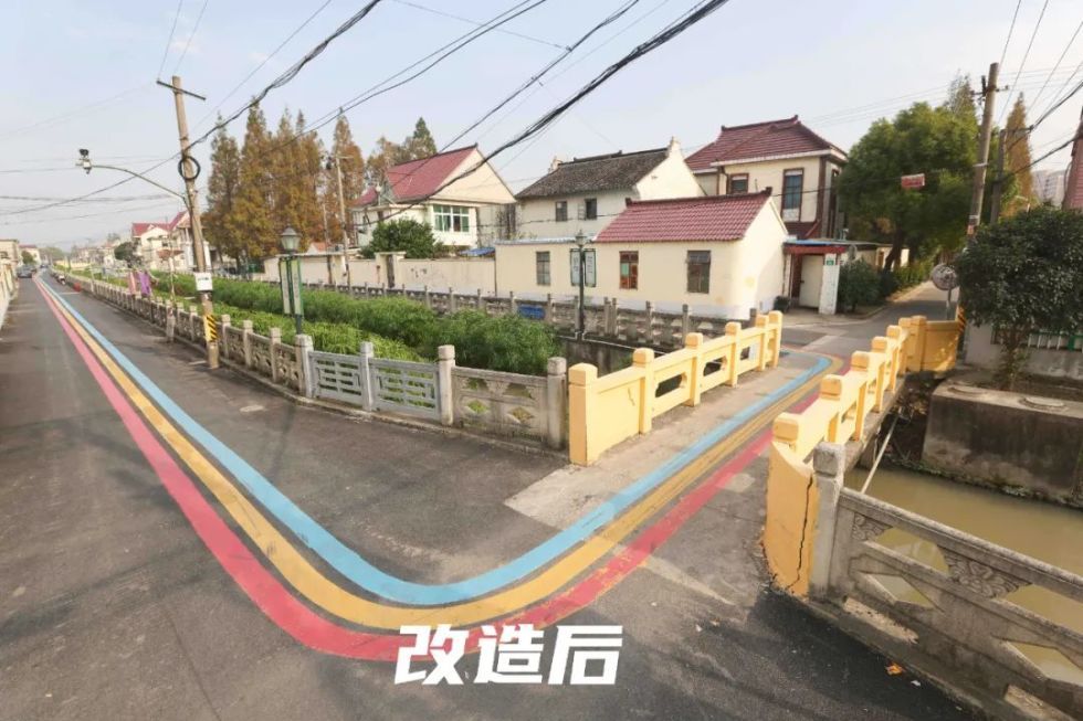 在凌桥村毛家浜三号桥至六号桥,十队(与新益二队交界)处新建彩色健身步道,居民在家门口就可以锻炼身体;村口两侧绿化和村委内景观也提升了,增加梅花、茶梅球等植被。