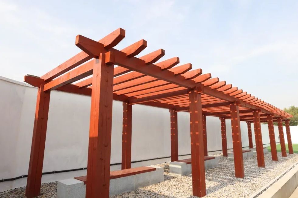 龙叶村新增了共享菜园,园子的入口设置拱门,菜园里设置了科普牌,便于小朋友们增加科普知识,增添童趣;增设爬藤花架,可以种植葡萄、丝瓜等爬藤蔬菜水果,并配有休憩坐凳,静待花架爬满植被便是乘凉赏月的好地方;在村内新增了晾衣架、晒被架,空间再利用,方便居民的生活。