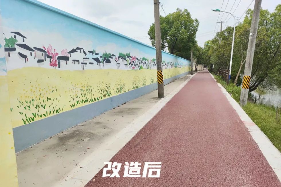 三岔港村的道路交通改造包括了健身步道、新建平石头和墙面美化。桑家宅路旁新建健身步道,平石翻挖新建和墙面的美化,让村民在回家路上就可以享受美丽风景。