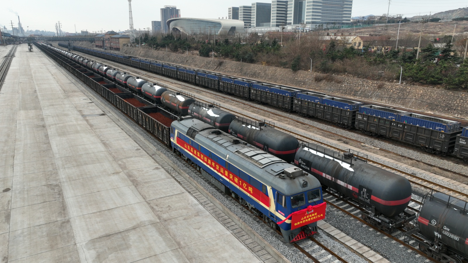 12月12日,随着一声响亮的汽笛声,运载着3150吨矿石发往甘肃骆驼巷的38018次列车缓缓驶出坪岚铁路岚山站,标志着山东高速集团铁路年货运量首次突破1亿吨大关。山东高速集团旗下负责铁路运输的山东高速轨道交通集团成为全国首家年货运量突破1亿吨的省级地方铁路企业。