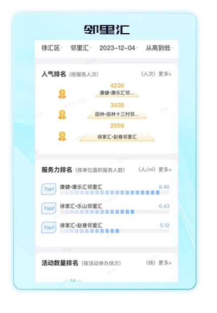 除通用办公功能以外,徐汇区一体化办公平台还整合接入邻里汇·生活盒子、12345热线、紧急报送、应急处置、来访预约等徐汇区特色应用,如工作人员可通过邻里汇·生活盒子应用对全区邻里盒子的人气指数、满意度指数等6个指标进行综合评价,持续提升服务能级;通过“12345”热线应用,实现市民服务热线快速响应、高效处置。目前,我区以“应上尽上”为原则,已接入全区71个移动政务应用,按照办公应用、大平安、大民生、大市场、大建管分块布局,在协同办公的基础上,助力城区数字治理和政务服务能级提升,使一体化办公平台成为支撑“一网统管”“一网通办”的具有上海和徐汇特色的“一网协同”新名片。