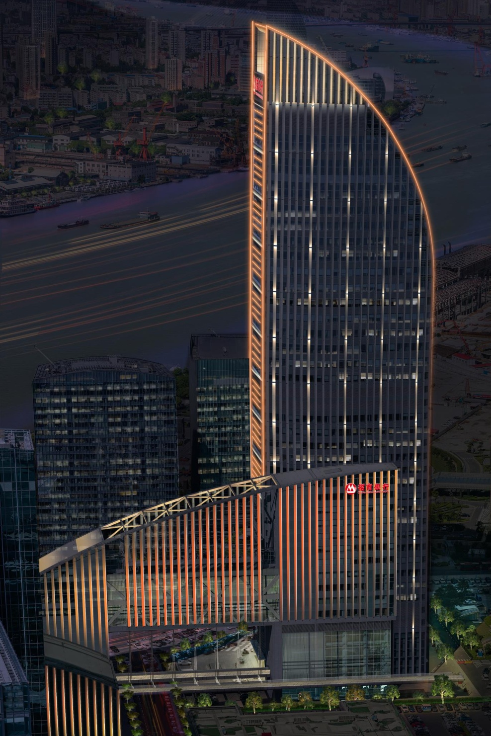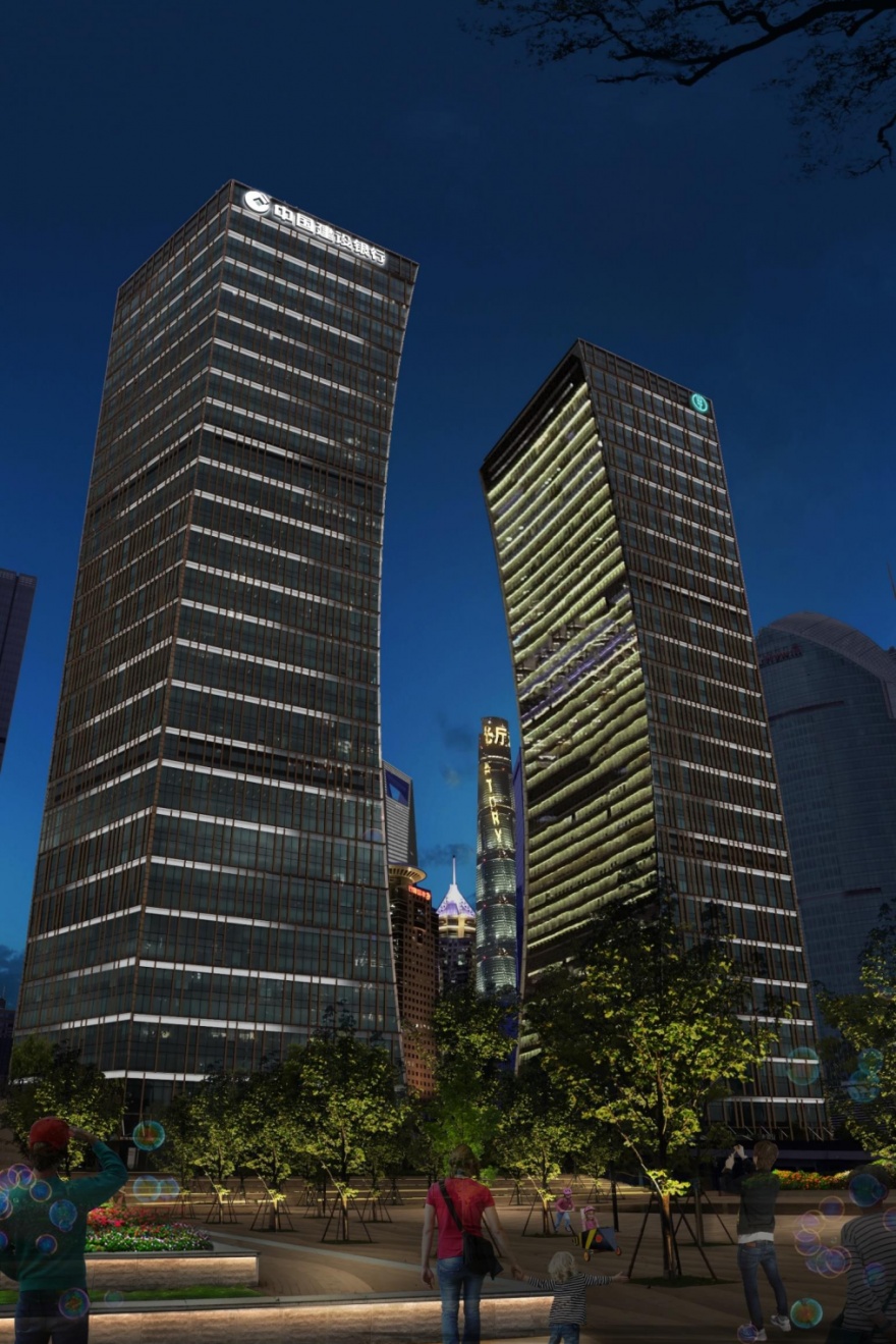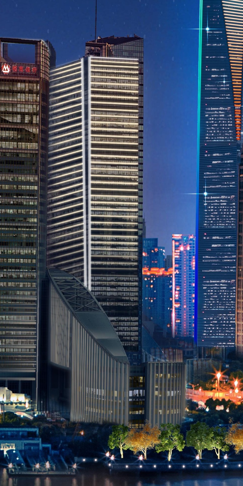 以上海中心为制高点,通过对上海银行大厦、时代金融大厦、招商银行大厦、浦江双辉(建行大厦、农银大厦)等楼宇特定视角进行景观照明建设提升,形成主从有别、前后层次分明且连续的天际线轮廓。