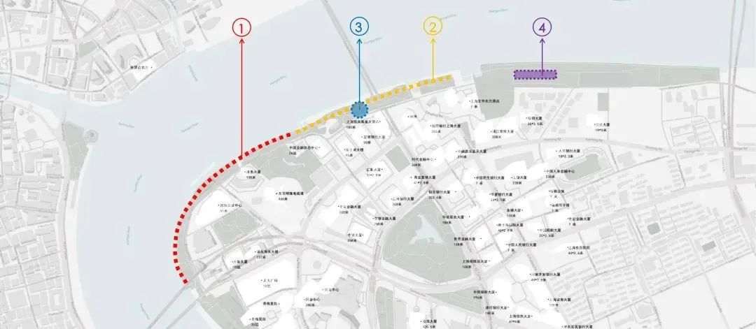 随着浦东滨江实现核心段22公里全线贯通开放,黄浦江畔的陆家嘴区域已经成为集观光旅游、商业休闲、文化休闲多功能于一体的城市中心公共休闲空间。陆家嘴对岸的世界会客厅是近年来上海市重要接待活动和全球盛会的承载地,在此视角下陆家嘴区域景观尽收眼底,是上海市重要的对外展示窗口。