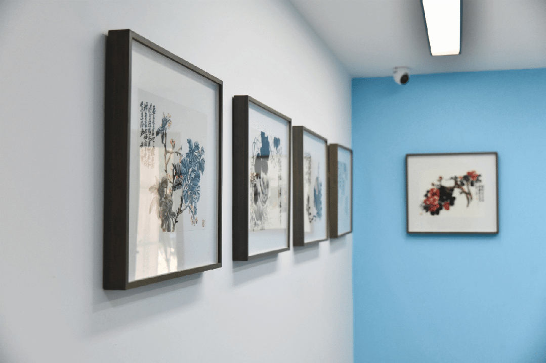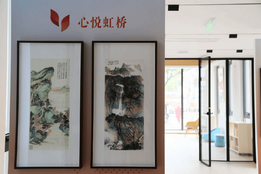 华漕镇初心驿・聚前湾党群服务中心面积约960平方米,设置有前湾书香荟、前湾连心阁、前湾天际线等三个服务区域,形成既相对独立,又互为联通的服务区块。一间美术馆将新海派水墨画大家陈家泠所作的《江南好》《青翠空濛》《荷趣》等艺术作品植入角角落落,让海派文化点缀前湾“美好街区”。