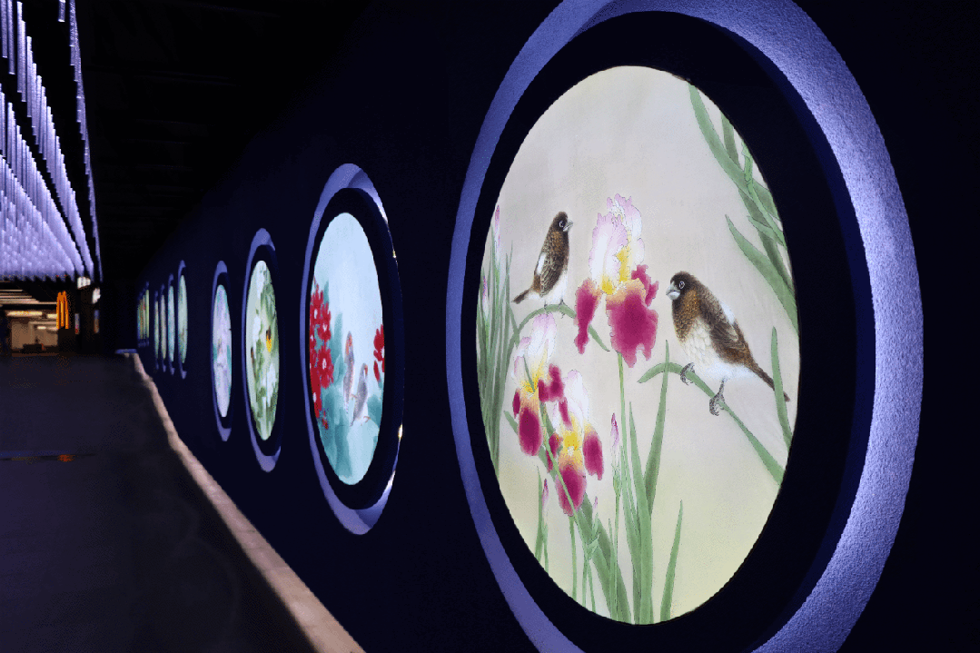 在七宝生态商务区的年轻化商业地标融信·上坤中心先番城中,光影、艺术与商圈三者实现“破壁”融合。当代画家万芾绘制的22幅《百花百鸟》系列作品进驻先番城下沉星空地铁连通道的软膜灯箱上,光影与美学的跨界对话,打造出流光溢彩、绚烂缤纷、如梦似幻的艺术长廊。午休时,拉上同事来这里放松放松吧~