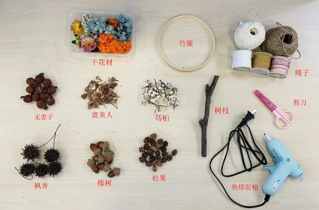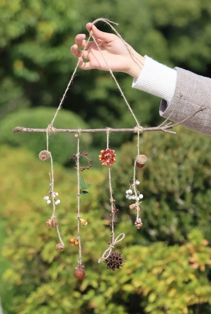 近期还有一种名为“捡”秋的活动正在流行。“捡”秋的主要内容是收集秋季的落叶、果实、树枝等自然元素,然后制作成各种手工艺品,如拼贴画、风铃、书签等。跟着小编一起去做一个果实风铃吧~