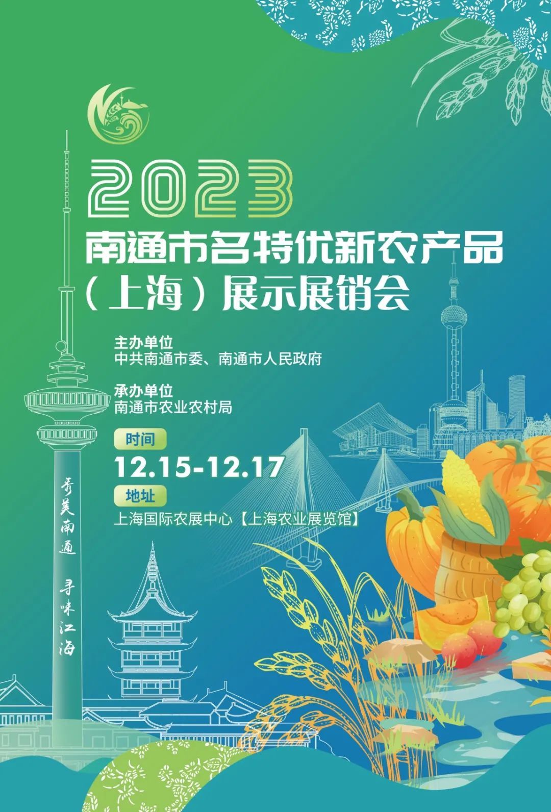 12月15日至17日,“2023南通名特优新农产品(上海)展示展销会”将在上海国际农展中心(上海农业展览馆)举办。