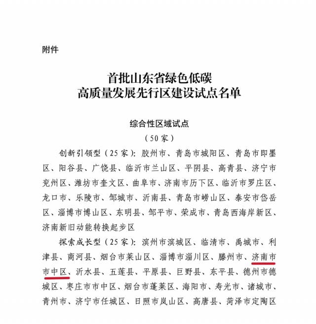 近日,首批山东省绿色低碳高质量发展先行区建设试点名单正式公布,市中区成功入选综合性区域试点,市中区推荐的山东电力设备有限公司入选企业试点。近年来,市中区抢抓全省绿色低碳高质量发展先行区建设重大机遇,纵深推进新旧动能转换,围绕“二次创业”发展大局,聚力项目管理、产业转型,绿色低碳高质量发展蓝图进一步明确。