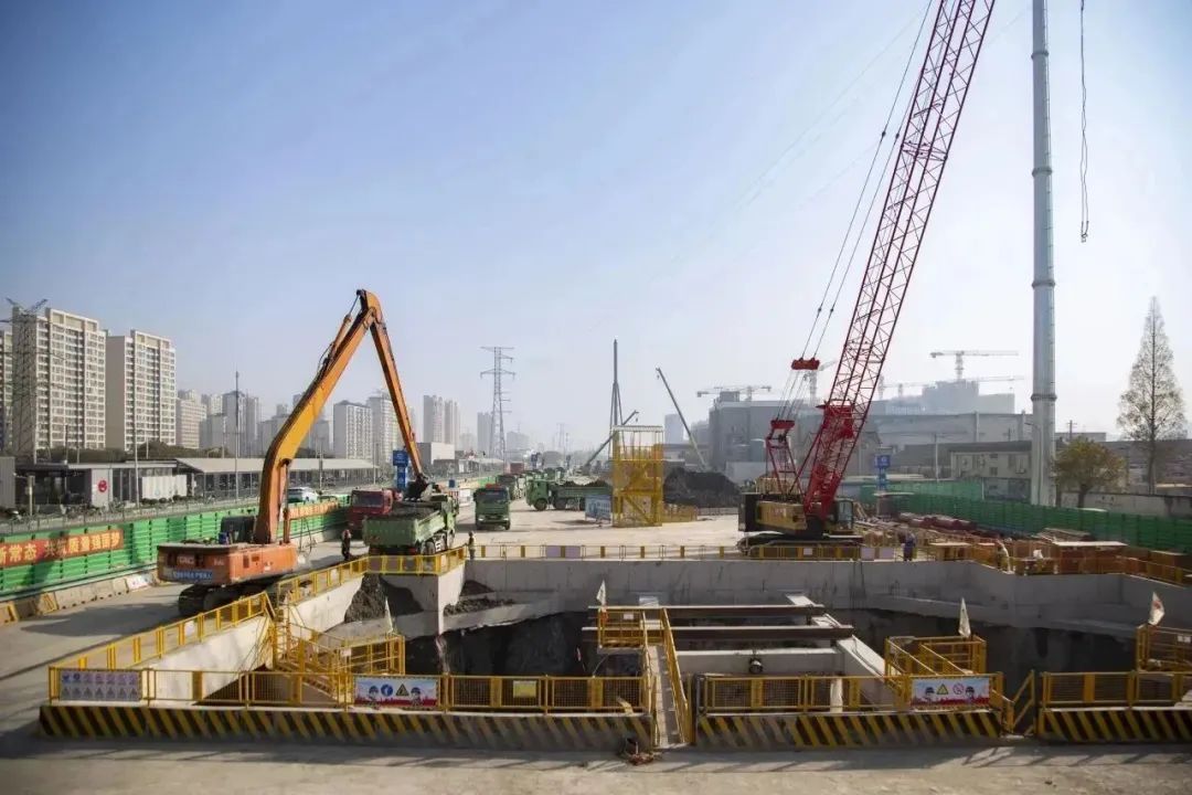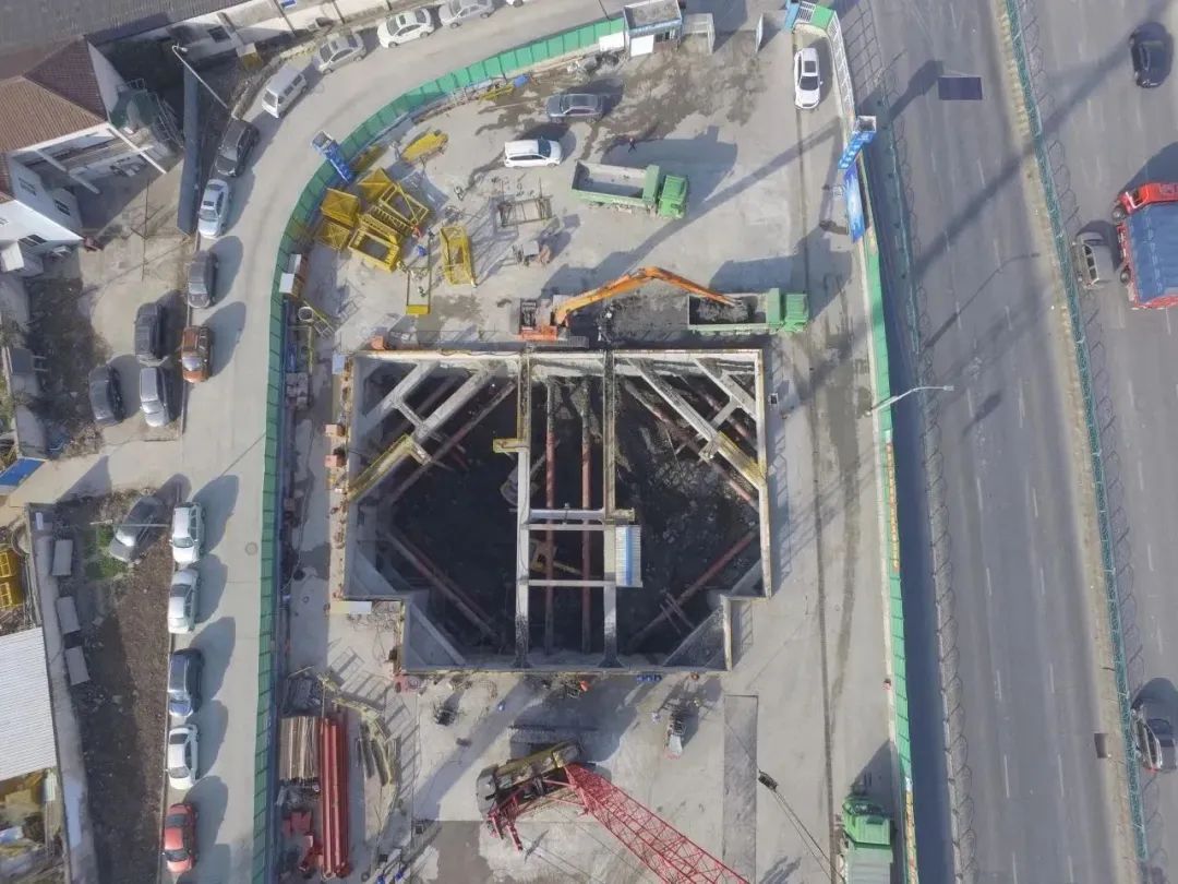 11标金园五路站基坑顺利开挖。近期,市域铁路嘉闵线11标金园五路站1区基坑进入开挖阶段。