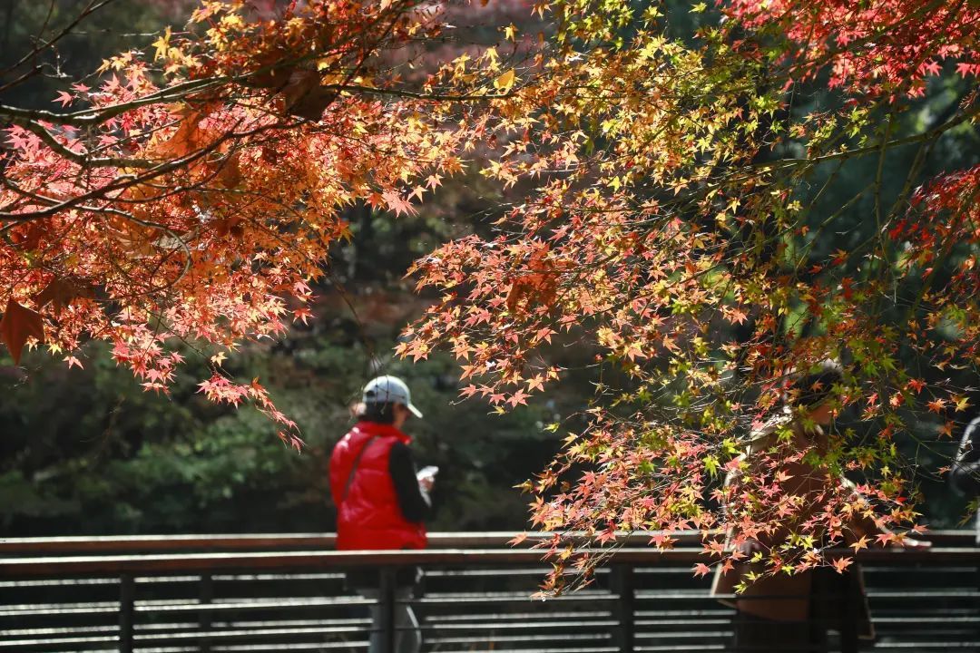 在这个秋末初冬的时节里,枫叶已经泛红,吸引了所有人的目光。细细看,每一片红叶都经过大自然的精心雕琢,拥有着自己独特的美丽。当飒飒微风轻掠枝头,枫叶沙沙作响,似乎在呼唤、在欢迎人们的到来。快赶上这趟秋日的末班车,一起来赴枫叶的约。