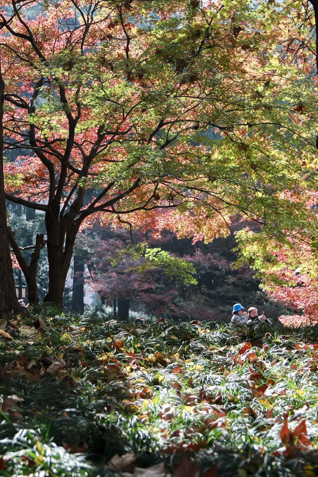 12月的申城,突然来袭的冷空气,送来了悄然红成一片的枫叶,藏在黄浦区延安中路大型公共绿地(下文简称延中绿地)里的这一抹热烈短暂的红,是专属于秋天尾巴的颜色。