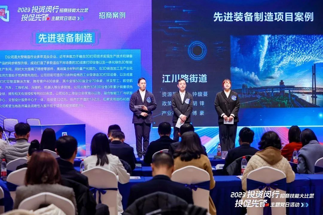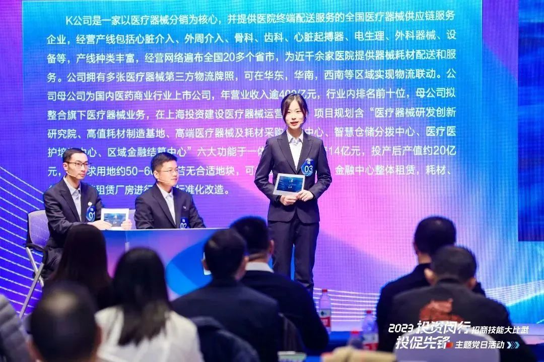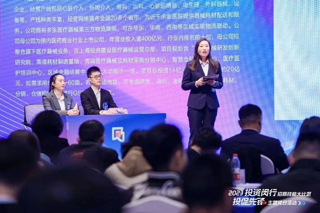 活动前,区投促中心根据闵行区重点产业,模拟出了生物医药、人工智能、新消费等十个招商项目需求案例,内容包括项目背景、所属行业、预计产出、政策配套及资源配套等需求。活动现场,20支参赛队伍根据各自选取的案例,通过竞演的形式,现场模拟招商,从资源、政策及产业配套三方面阐述各自的招商落地方案,在实战中体现招商人精神风采,讲好招商故事,打造招商样板。