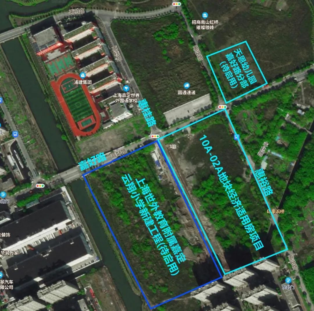 项目东至惠裕路、南至印家浜、西至惠桂路、北至嘉好路,西面是待启用的上海世外教育附属嘉定云翔小学,西北方向是上海嘉定世界外国语学校,东北方向是待启用的天恩幼儿园嘉好路分部,教育资源雄厚。