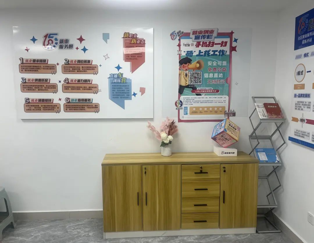 南东社区就业服务小站积极引入品·南东、悦·南东、营·南东3大特色阵地平台资源,创新打造“看·政策指导角”“查·自助服务台”“说·沟通洽谈桌”等多功能区域,通过服务站点开放、服务窗口前置、服务资源整合、服务重心下沉,将公共就业服务延伸至末梢的方式方法,共同发挥就业需求排摸、就业岗位募集、就业供需匹配、就业能力提升、就业援助帮扶、创业指导服务6大服务功能,推进公共就业服务水平稳步提升。