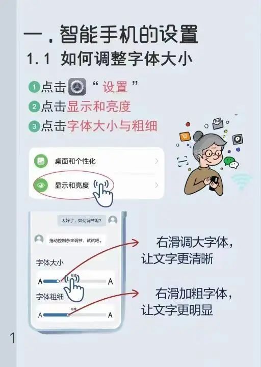 解决了“学什么”的问题,如何设计出一本老年人“看得懂、学得会、用得了”的使用指南又成为新的挑战,汇龙居民区联合打浦桥社区社会组织服务中心、艾乂文化共同完成内容修订与版面设计,在数易其稿后最终“去粗取精”,以清晰、直观、精简为原则打磨出这本兼具实用性与美观度的智能手机使用指南。指南共九大章节,内容编排由浅入深、层层递进,既有基础版的常用功能,又有进阶版的应用教学。呈现形式上则以图文并茂为主,力求图片清晰、讲解详细,并特意加大字号、拉宽行间距以提升老年人的阅读体验。
