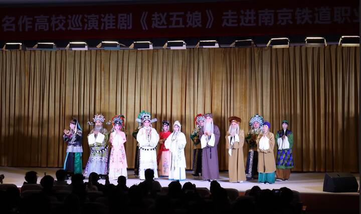 12月12日晚,江苏戏曲名作高校巡演淮剧《赵五娘》走进南京铁道职业技术学院,来自省淮剧团的艺术家们凭借各自出色的唱念做表,将这出淮剧经典剧目演绎得感人肺腑、震撼人心,也引发了学生们的热烈讨论,大家纷纷从当下以及各自的视角解读了心目中与众不同的赵五娘、蔡伯喈。