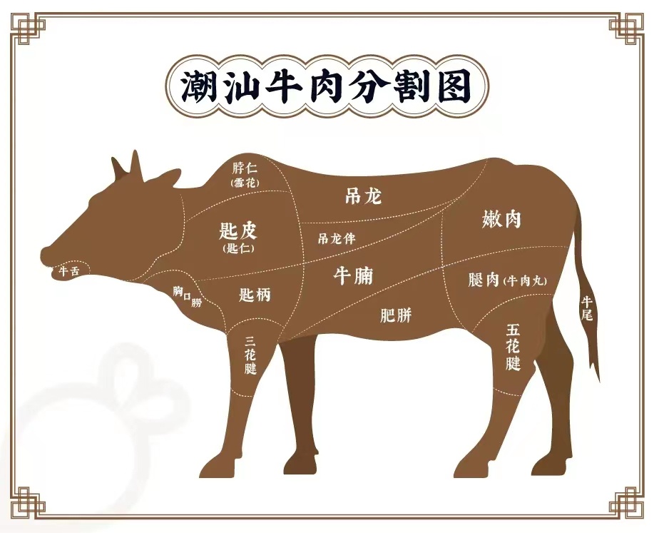 潮汕火锅讲究新鲜,解牛也是关键。下面就给大家详细介绍一下这些部位的特点和建议涮肉时长。