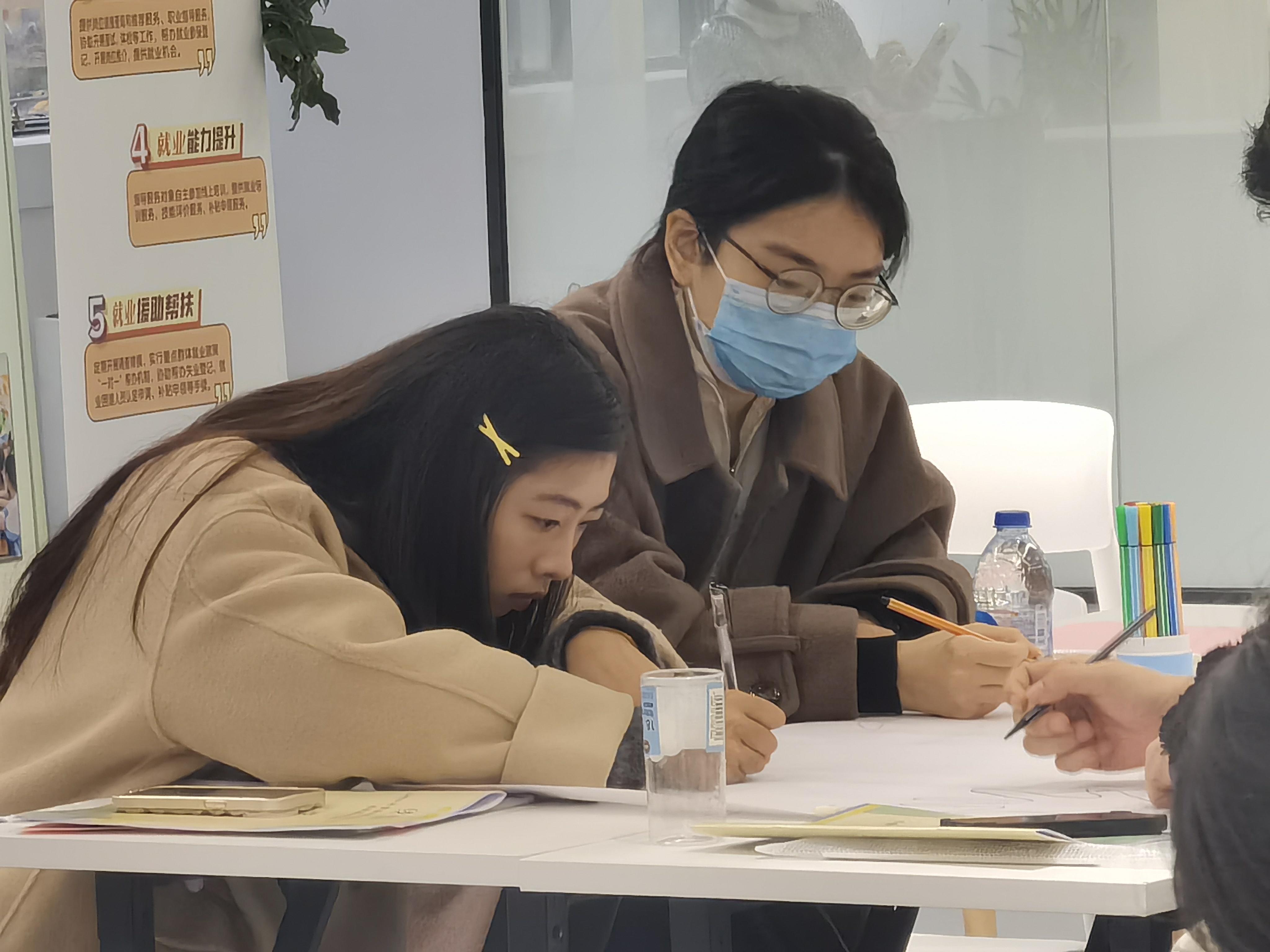 12月15日,2023年黄浦区青年助业直通车求职能力实训营内气氛“剑拔弩张”。按照实训营课程计划,当天上午,学员们在带教老师的指导下对面试能力和职场表达能力进行了演练;下午的实战环节,上海经纬集团图腾企业咨询有限公司带着办公室助理、财务、会务接待、运维支持工程师等多个代为招聘的岗位走进实训营,学员们经过一周的学习信心满满,瞄准心仪的岗位,递上精心制作的简历,与招聘人员现场“过招”。