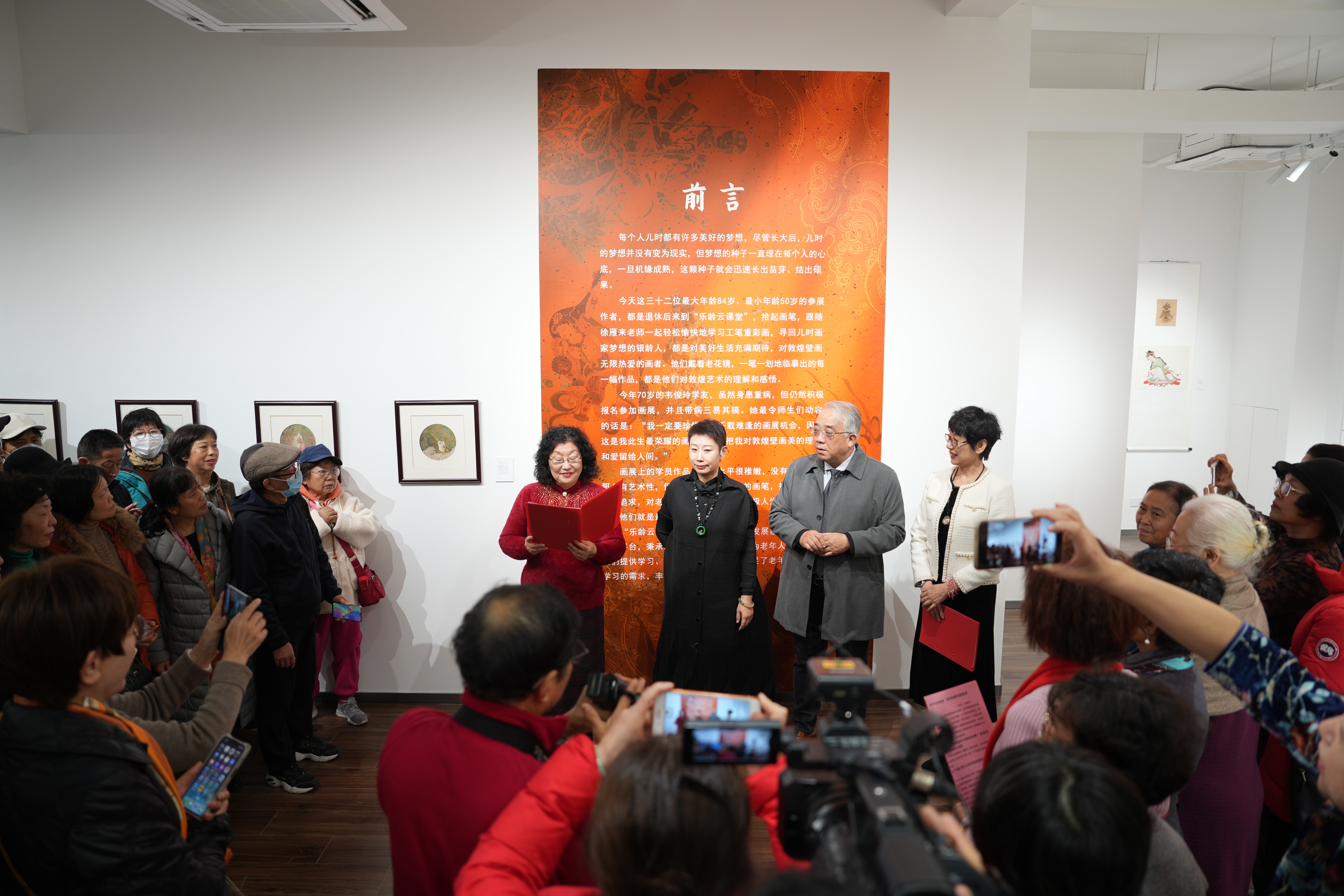 12月15日,“乐龄云课堂”在上海M50创意园举办“一笔越千年白首绘敦煌”百幅敦煌壁画师生作品展。作品由一群热情洋溢的老年绘画爱好者创造,用自己的方式诠释了敦煌艺术的魅力,为生活增添了丰富的色彩。