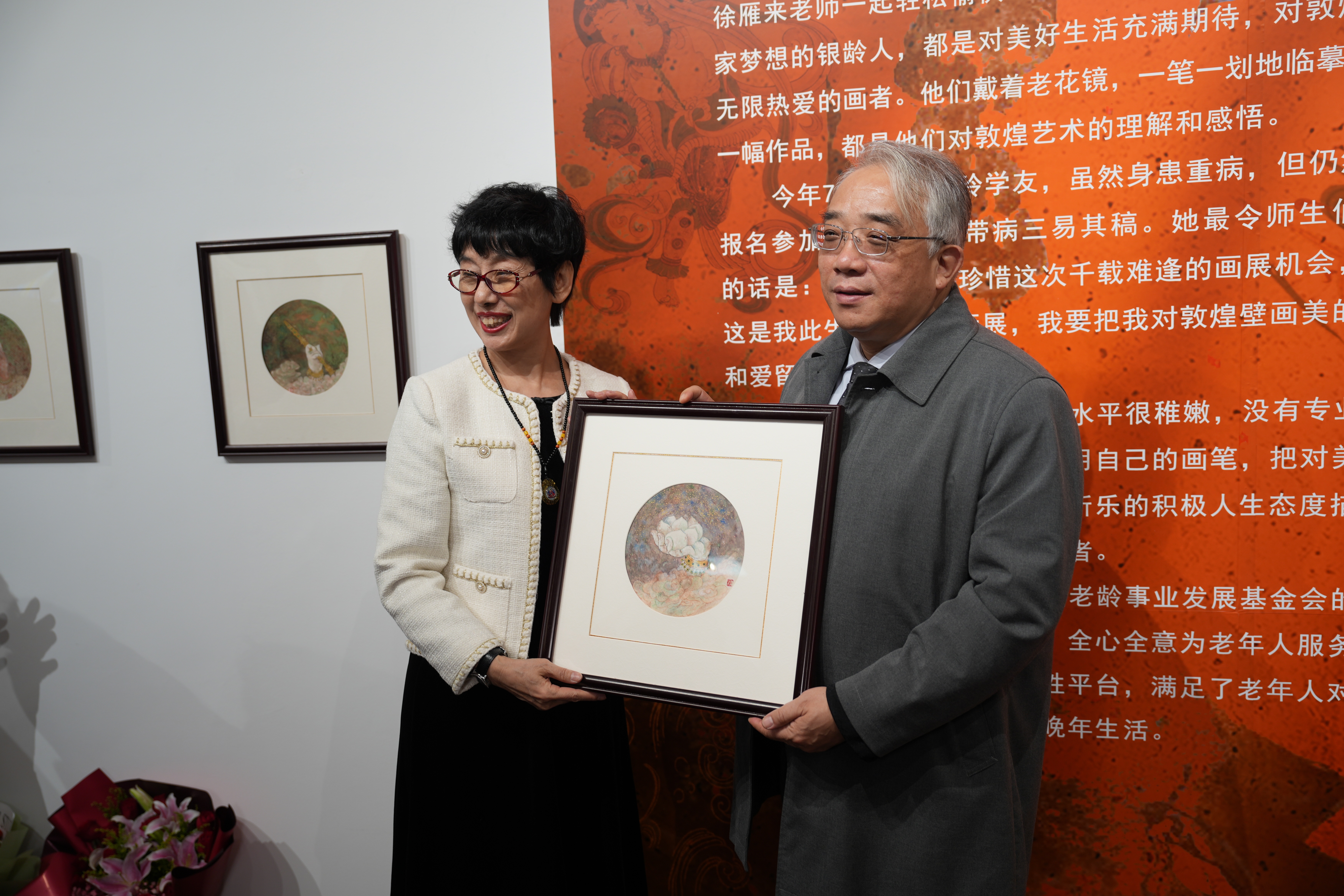 敦煌画展不仅为观众带来了视觉的盛宴,也为老年绘画爱好者提供了一个展示才华的平台,满足老年人退休后的创作需求。这与主办方中国老龄事业发展基金会老年教育公益行动项目办副主任、广西师范大学出版社(上海)有限公司总经理刘广汉的观念不谋而合。刘广汉表示,现代老年人在健康、娱乐、交往都有需求,而这些需求通过参与“乐龄云课堂”的绘画课能得到满足,“选择敦煌为主题其实不仅是向千年传统文化致敬,更是因为敦煌文化也契合了民族复兴的时代主题。”
