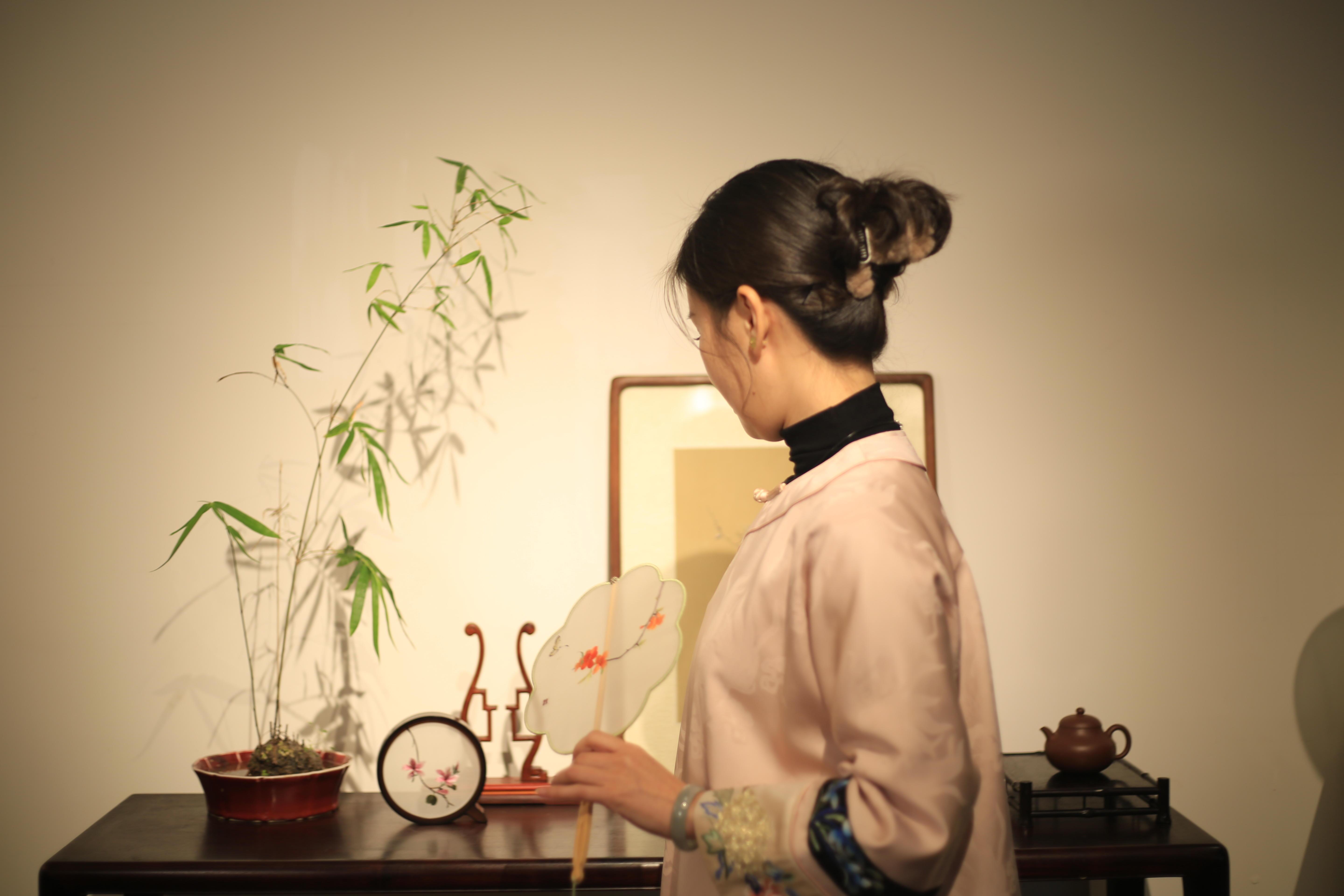 陈华琼老师将她过往的花卉团扇和文创作品一一展示。