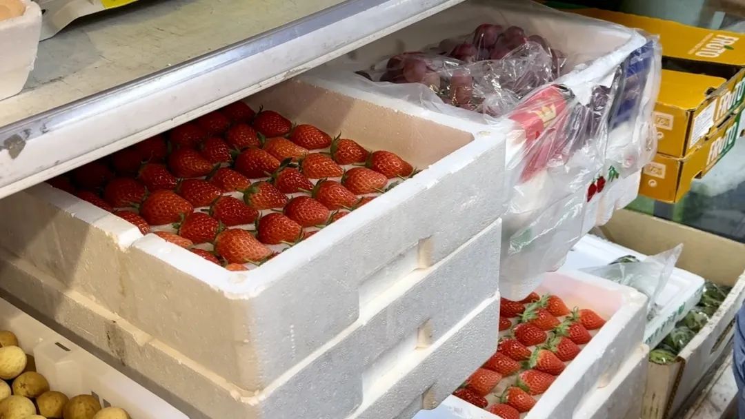 记者在静安区走访了多家售卖草莓的小超市和水果店,发现草莓在这些商铺中都被摆放在非常显眼的位置,似乎已经成为了冬日里商铺的标志性水果,吸引了众多消费者的目光。