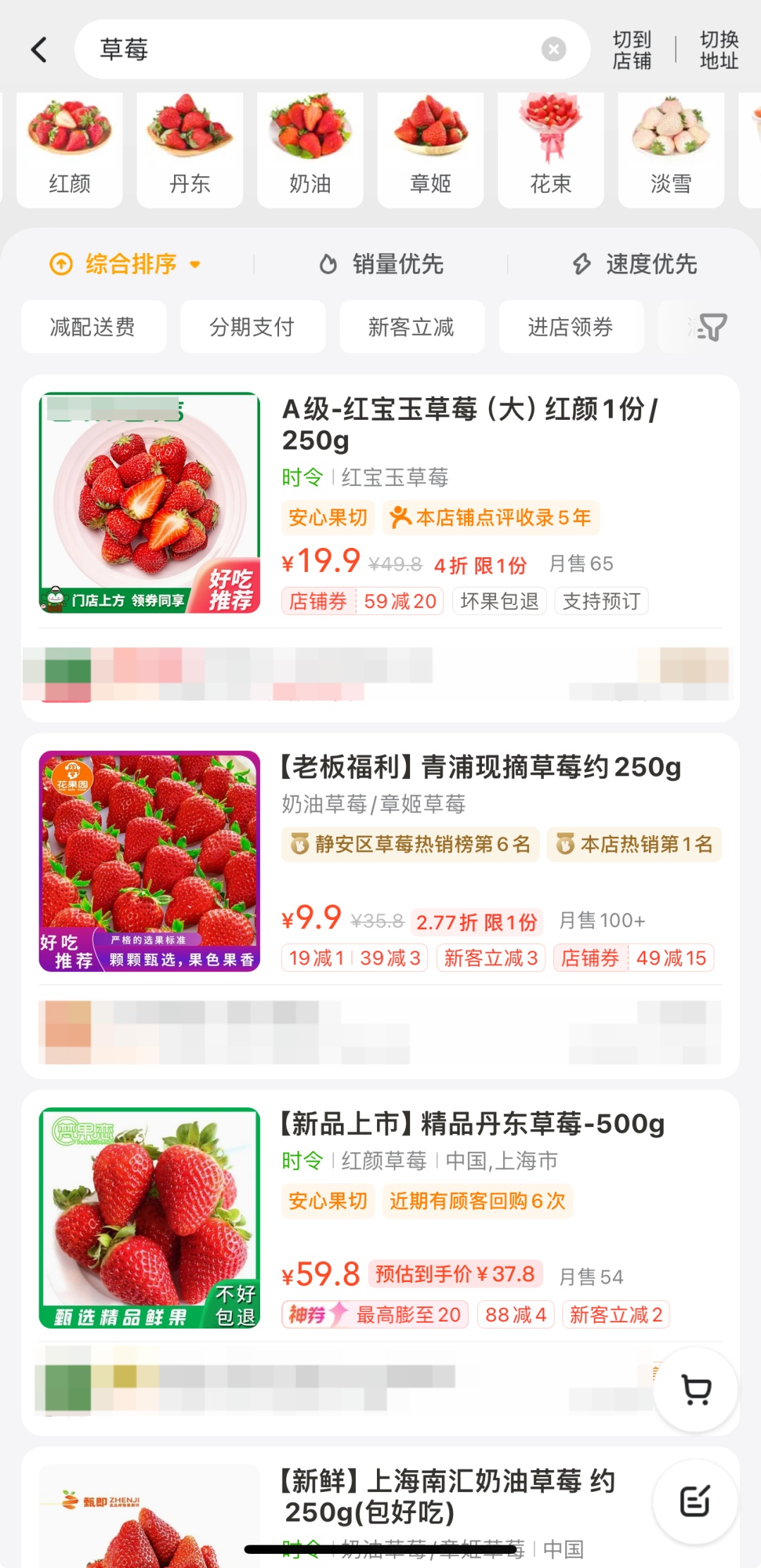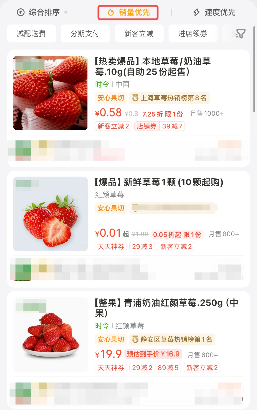 在外卖软件上,草莓也是种类繁多,除了可以品尝到本地出产的新鲜草莓,还有来自其他地方的红宝玉草莓、丹东草莓和淡雪草莓等多种选择。但是销量最多的,还是本地草莓品种。