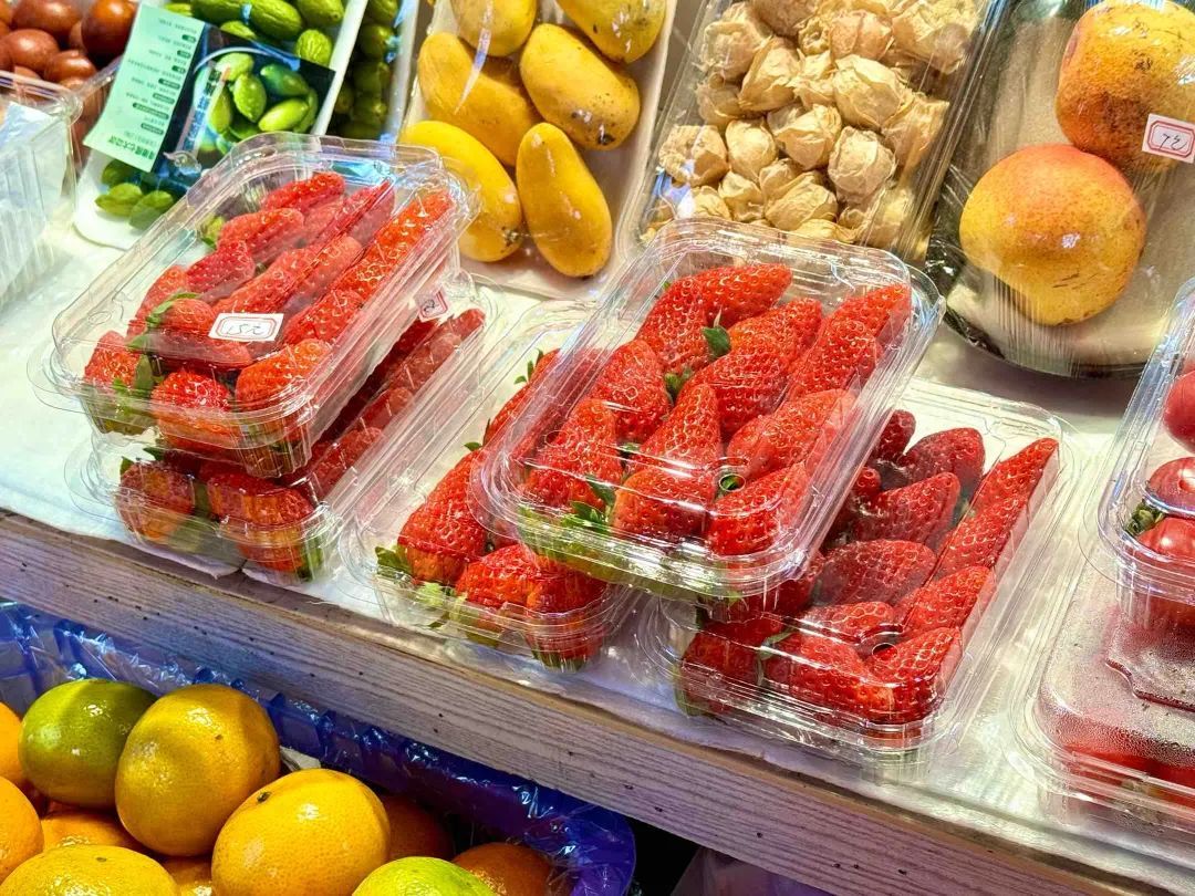 草莓的价格根据品质和新鲜程度而有所不同,大致在23元到28元每斤之间。还有一些摊主专门挑选出来熟透的草莓,价格相对较低,每斤仅需10元。记者了解到,这几家商铺中销售的大多数草莓品种都是青浦奶油草莓,口感鲜美,非常受欢迎。此外,还有一些草莓是来自江苏南通的奶油草莓品种,同样具有优秀的品质和口感。
