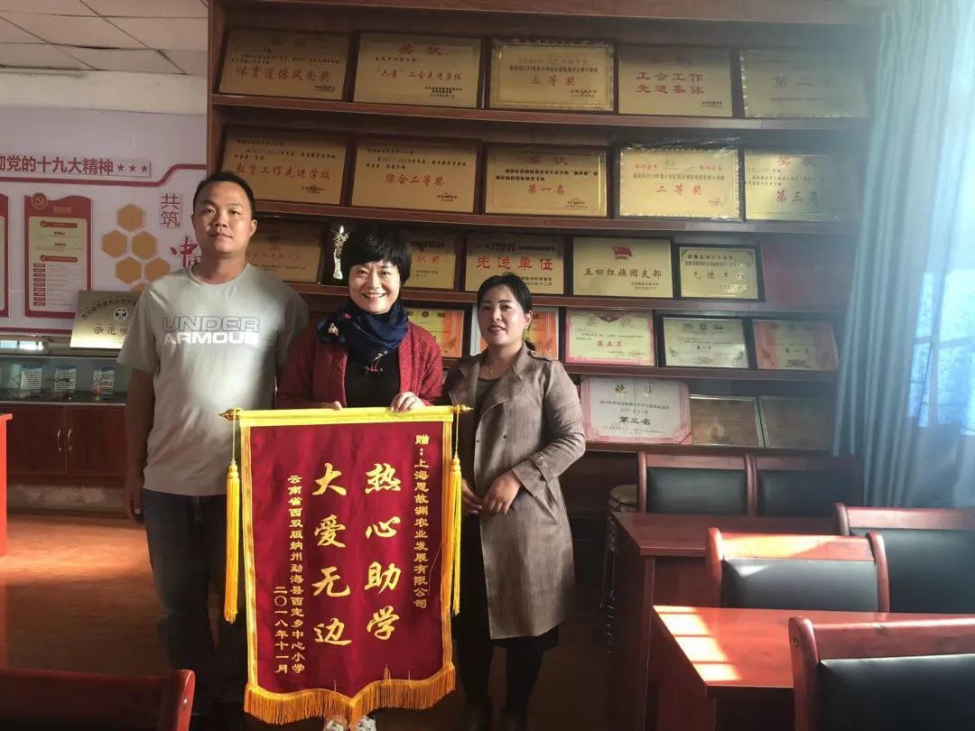 周影还十分热衷公益事业。在她的公司里,挂满了来自云南的锦旗。“大山里的孩子更需要帮助。”周影说。公司曾多次捐赠爱心物资,资助贫困家庭的孩子完成学业。自沪滇扶贫协作工作开展以来,公司还通过承租沪滇扶贫协作项目中的两个仔猪繁育中心,发展生猪养殖产业,助力巩固脱贫攻坚成果。此外,周影还带领团队承包了两座茶山,助力当地农民增收。来自云南耿马自治县大兴乡班坝完的小学生陆江清开心地说:“今天我收到了新文具和新水杯,还有我身上穿的新衣服,特别开心,谢谢叔叔阿姨们。”