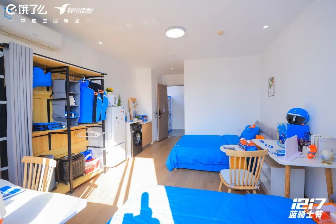 饿了么今年还升级了“医食驻行”全方位保障举措,让蓝骑士“饿了能就餐、累了能歇脚、出行有保障、医检更便捷”。不仅发放百万件暖冬物资,联合爱心商家为蓝骑士提供专属优惠餐,还联合全国总工会、各地方总工会开展免费体检、免费理发等活动。不久前,全国首个外卖骑手星级公寓也正式落地普陀区,温馨舒适的“骑手新家”已迎来部分蓝骑士入住。