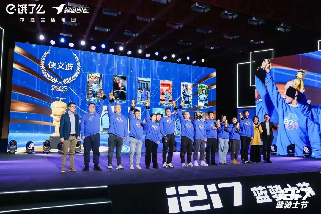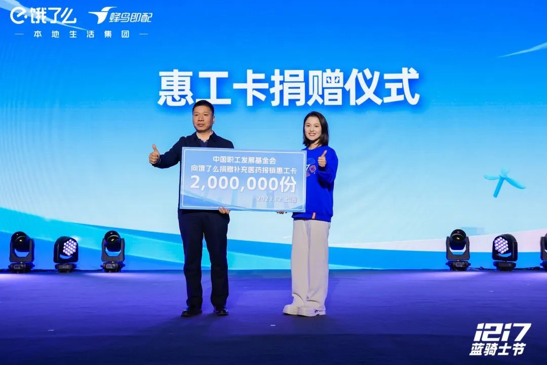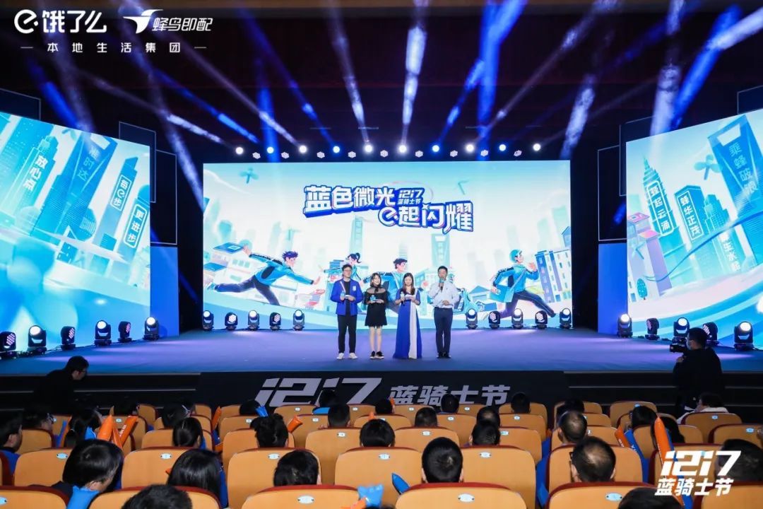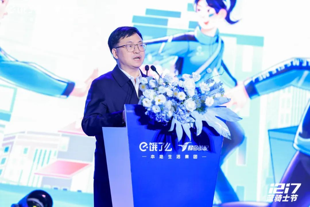 12月17日,饿了么第六届蓝骑士节在普陀区举办。会上,饿了么蜂鸟即配宣布推出“蜂盛”计划,打造行业首个骑手公益激励体系,共同聚力让商家更丰产、让服务更丰富、让蓝骑士更丰收。中华全国总工会书记处书记、党组成员邹震出席活动并致辞。中国财贸轻纺烟草工会主席、分党组书记刘小昶,中国财贸轻纺烟草工会副主席、分党组成员王宏伟,中国职工发展基金会理事长武建光;上海市总工会党组书记、副主席黄红,上海市总工会党组成员、副主席桂晓燕;普陀区委副书记周艳,普陀区人大常委会副主任、总工会主席姚军出席。