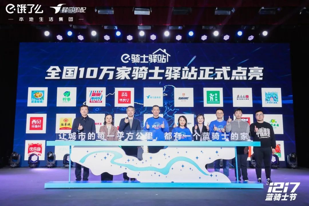 当天的蓝骑士节上,饿了么推出行业首个骑士驿站解决方案。通过联合政府相关部门、商家、生态服务商等社会力量共建标准化驿站,为外卖骑手及户外工作者提供休息场所、免费饮品、优惠餐饮、关爱物资等保障和支持。截至目前,饿了么已共建10万家骑士驿站,并在蜂鸟App地图上点亮。
